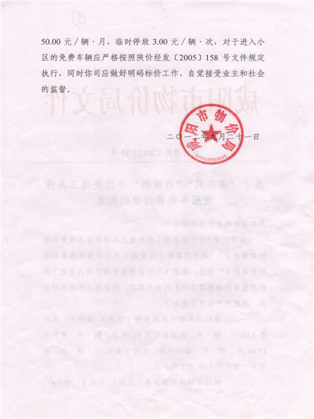 車輛收費(fèi)批文