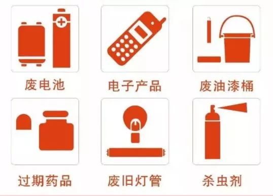 指生活垃圾中對人體健康或者自然環(huán)境造成直接或者潛在危害的物品,包括廢充電電池、費紐扣式電池、廢燈管、過期藥品、殺蟲劑瓶、廢油漆、過期化妝品、水銀產(chǎn)品等。
