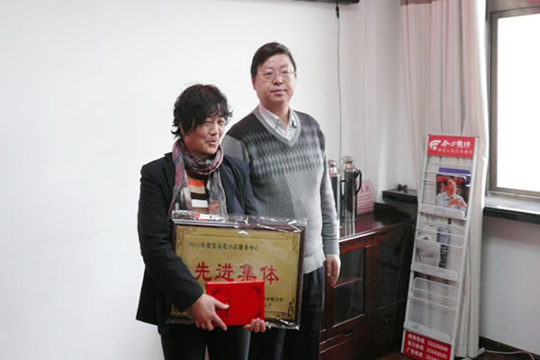 李總向榮獲2011年物業(yè)公司先進集體的安谷苑服務中心頒獎