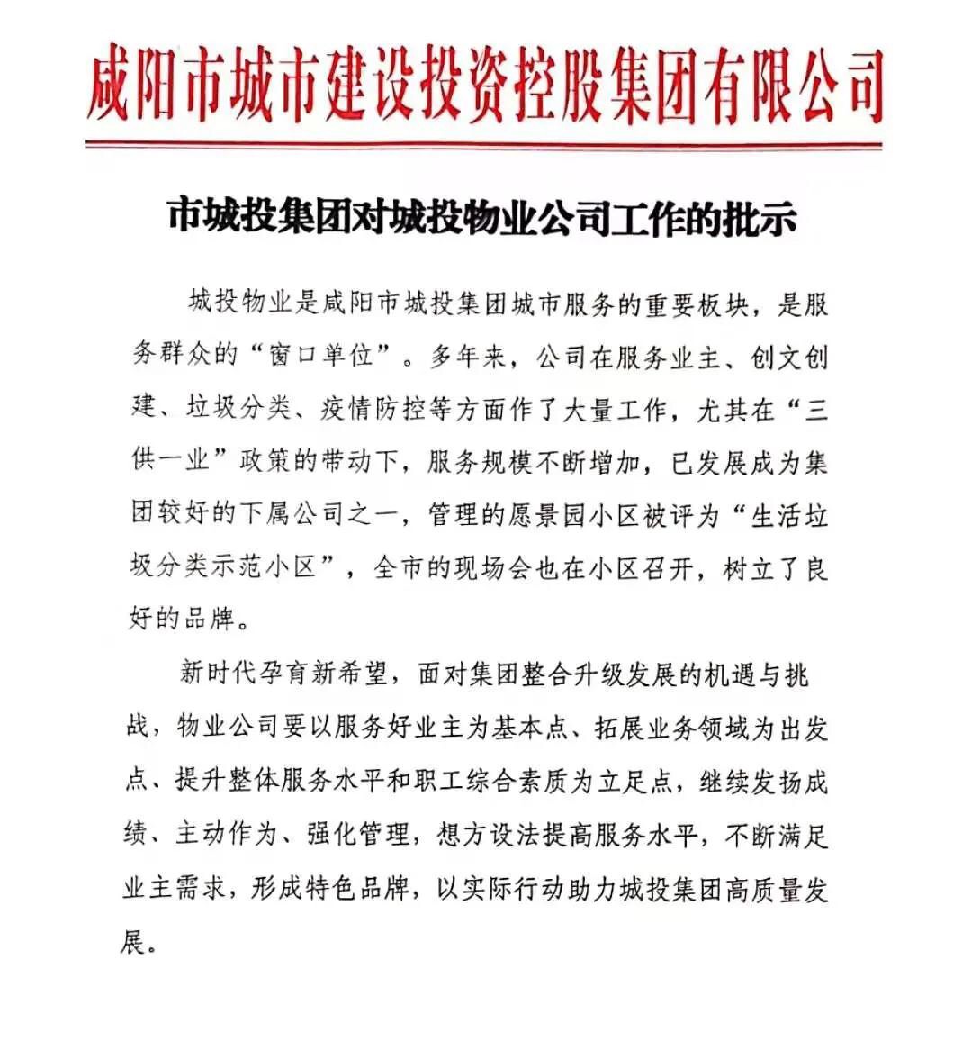 會(huì)議開始前,王雅玲宣讀《市城投集團(tuán)對(duì)城投物業(yè)公司工作的批示》。批示中指出,多年來,城投物業(yè)在服務(wù)業(yè)主、創(chuàng)文創(chuàng)建、垃圾分類、疫情防控等方面作了大量的工作,尤其在“三供一業(yè)”政策的帶動(dòng)下,服務(wù)規(guī)模不斷增加,已成為集團(tuán)較好的下屬公司之一,樹立了良好的品牌。希望城投物業(yè)在今后的工作中,繼續(xù)發(fā)揚(yáng)成績、主動(dòng)作為、強(qiáng)化管理,想方設(shè)法提高服務(wù)水平,以實(shí)際行動(dòng)助力城投集團(tuán)高質(zhì)量發(fā)展。