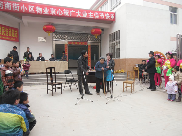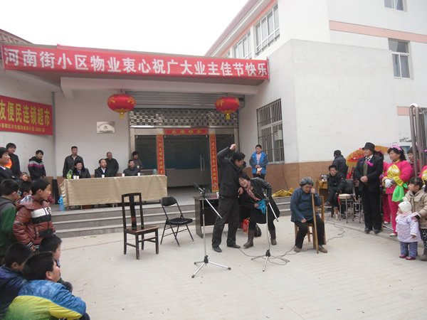 (信息員:李建華)農(nóng)歷正月十三(2月4日),河南街小區(qū)鑼鼓喧天,彩旗招展,熱鬧非凡,呈現(xiàn)出一片祥和的節(jié)日氣氛。 上午10時聯(lián)歡會準(zhǔn)時開演,小區(qū)業(yè)主自編自演的腰鼓舞、扇子舞、拉開了這次活動的序幕,他們以優(yōu)美、歡暢的舞姿,以矯健穩(wěn)定的舞步,揮舞著手中的彩帶與鼓錘,生龍活虎,時伏時起。精彩的表演,贏得了在場觀眾的陣陣掌聲,尤其是小品《遲到的紅梅》將聯(lián)誼會逐漸推向了高潮,詼諧幽默地方話臺詞、真情再現(xiàn)的感情留露,深深的感染著在場的每一位觀眾。同時也讓我們清醒的認(rèn)識到,尊老愛幼的傳統(tǒng)美德,無論在什么時候,我們都應(yīng)該繼承與發(fā)揚(yáng),理解與關(guān)愛自己身邊的長輩與老人。 通過這次聯(lián)誼會,不但拉近與改善了物業(yè)與業(yè)主的關(guān)系,也活躍了小區(qū)精神文化生活,同時也體現(xiàn)了物業(yè)與小區(qū)業(yè)主都是一家人的魚水之情,鼓舞了物業(yè)辦全體員工繼續(xù)搞好小區(qū)各項(xiàng)工作的信心。